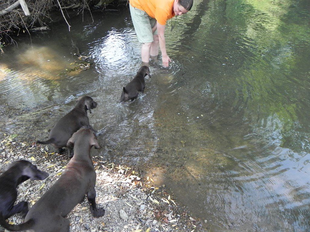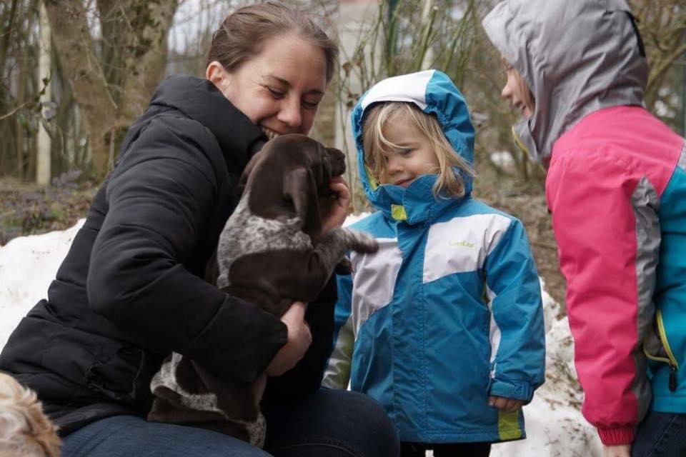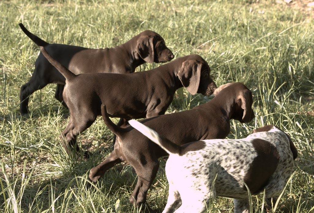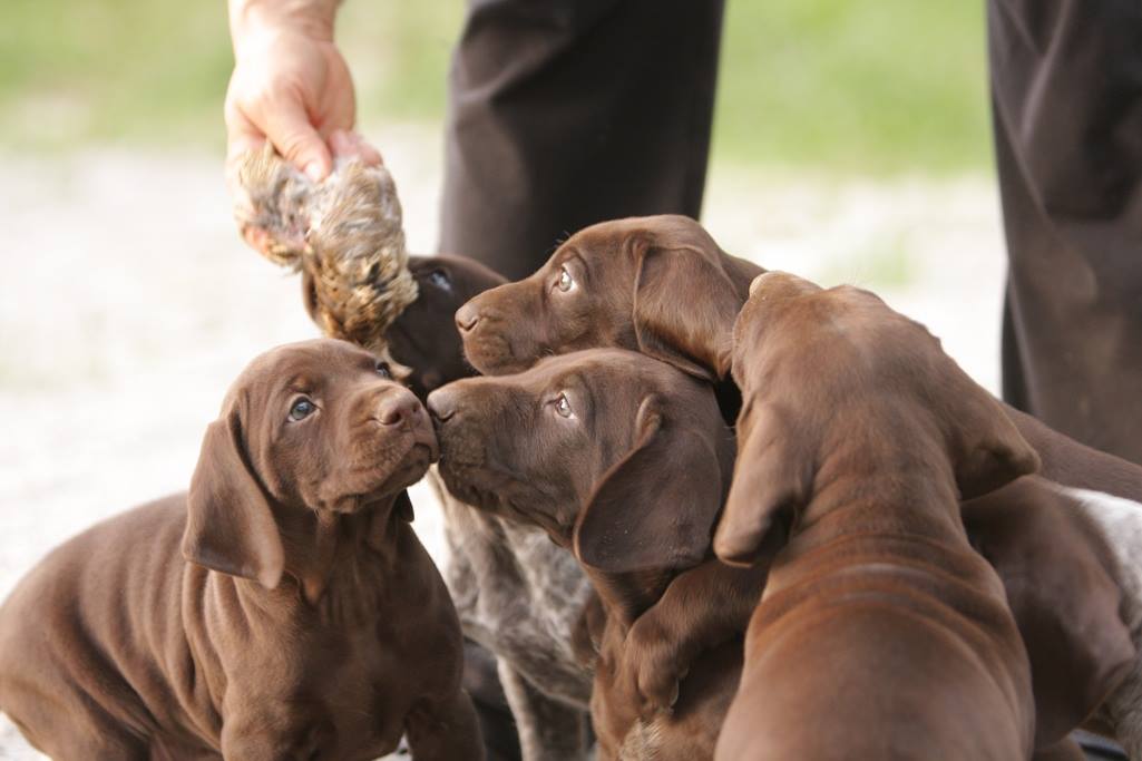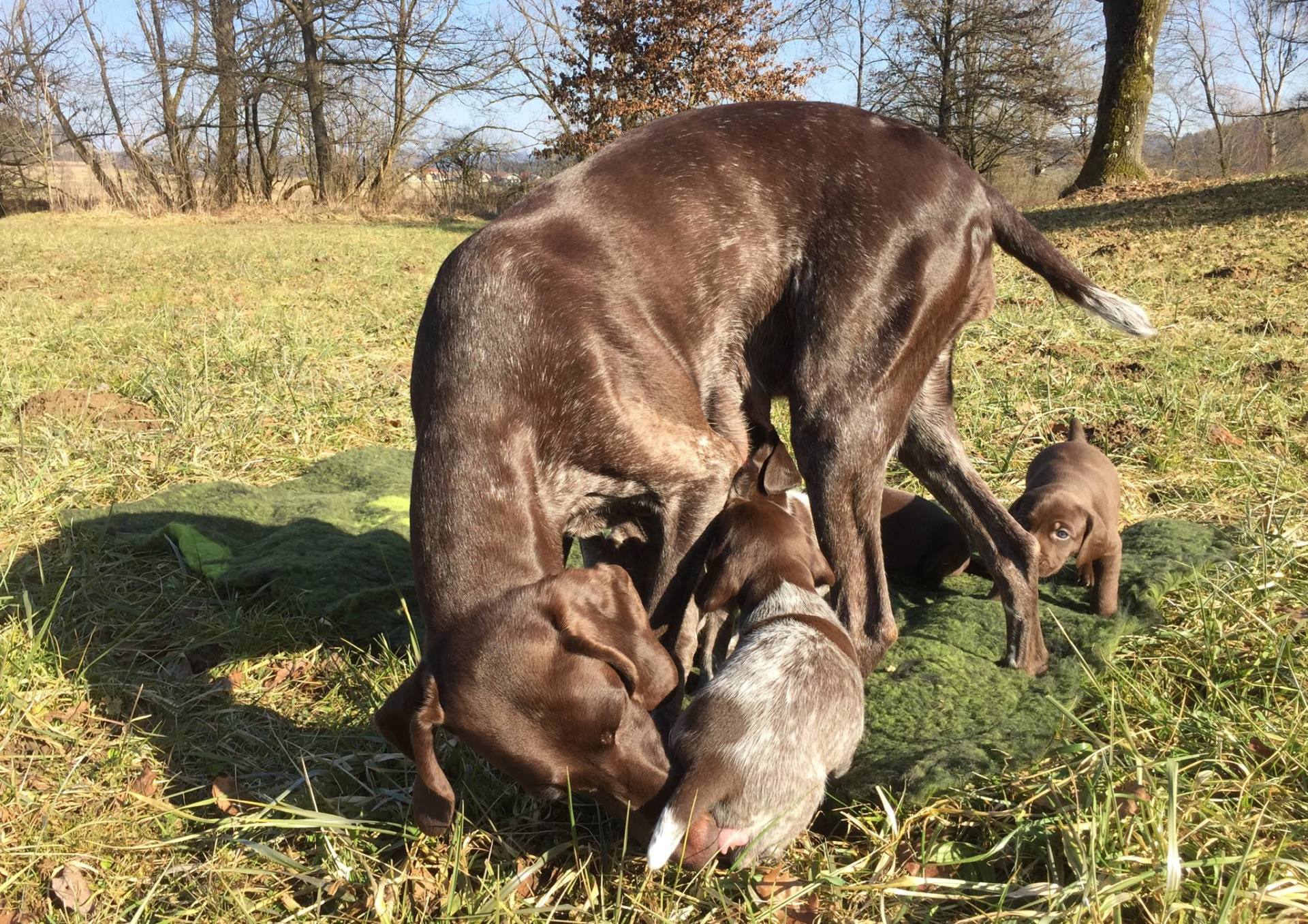 They are used to be in the household as well as to explore in their outside kennel and in revier. When old enough, they start to meet the other dogs of our pack and get to interact with different kinds of game. Like this, we support their natural traits of apporting, pointing, and also swimming if the weather is appropriate.